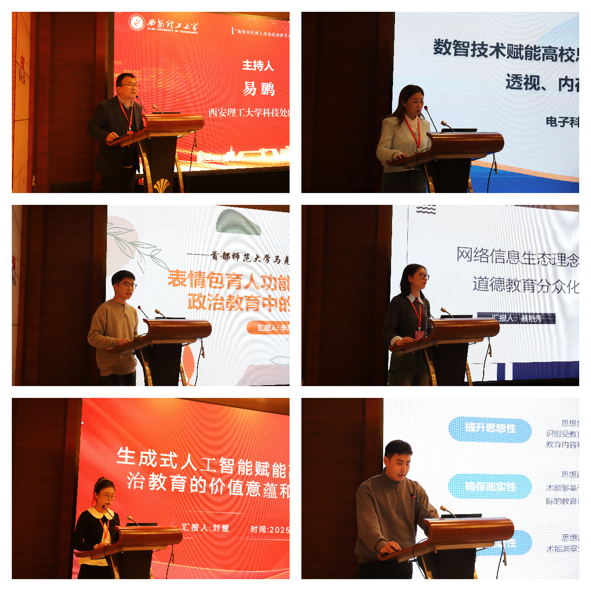 主旨报告阶段由3044永利集团党委书记张锐主持。西安交通大学党委组织部部长、3044永利集团党委书记周远教授、陕西师范大学3044永利集团副院长张琳教授、西北工业大学3044永利集团鲁杰教授、3044永利集团史向军教授、西北大学3044永利集团同雪莉教授、陕西科技大学党委宣传部部长李萌副教授围绕会议主题分别以《生成式人工智能赋能网上思想道德教育精准化:价值、困境与路径》《算法推荐嵌入高校思政课教学的优势、风险与应对》《思想政治教育分众化:价值确证、主体确认与方法优化》《发挥思想道德建设在健康社会心态培育中的塑造作用》《数字青年研究》《精准化、分众化做好网络社交空间的营造理路探析》先后作了主旨报告,引起广泛讨论。
