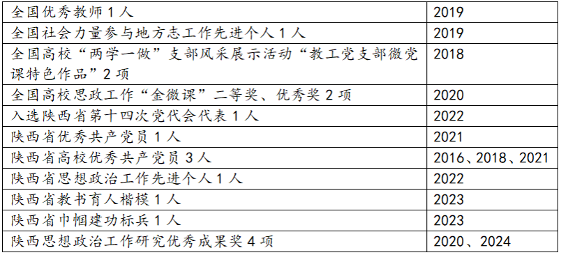 2018年以来学院党委连续7年在基层党委书记抓党建工作述职评议考核工作中获得“好”等次,2019年以来连续6次获先进基层党委、先进基层党组织称号,2020年以来连续3次获“三全育人”先进集体,4次获微党课比赛优秀组织奖。