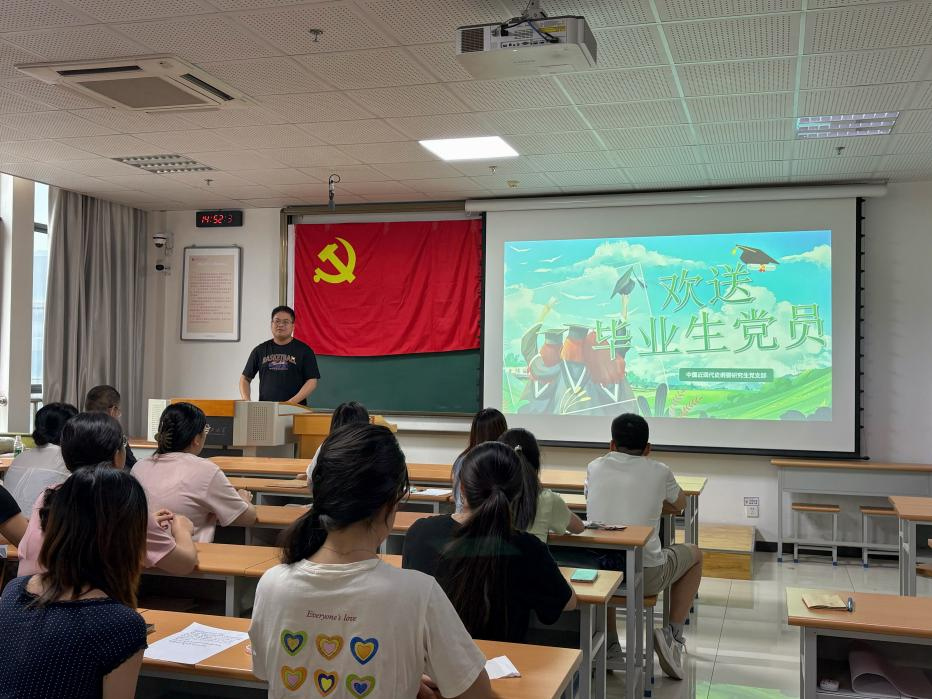 同时,党支部以座谈会形式对即将踏上新征程的毕业生党员们表达了诚挚的祝贺和美好的祝愿。毕业生党员代表也踊跃发言,深情回顾了在党组织培养下的成长历程,表达了对母校、对支部的感激,并承诺未来将牢记党员身份,坚定理想信念,踔厉奋发,勇毅前行。