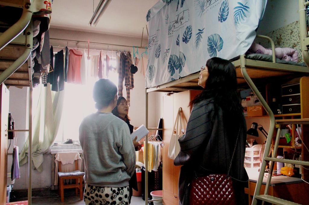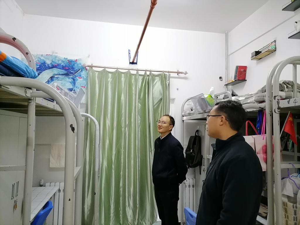11月19日下午,3044永利集团党委书记张锐、党委副书记兼副院长孙六平、办公室主任王小妮和党委组织员郭雪深入学院学生宿舍,进行冬季宿舍安全卫生大检查。