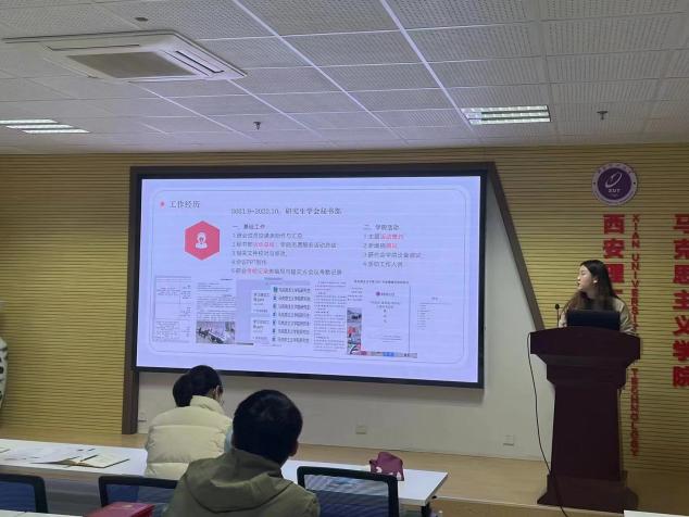 武美妤分别从组织结构、思想引领、学术领航、文体活动、志愿服务等五个方面,就我院研究生会2021-2022年工作开展情况及取得成绩做简要汇报。随后,7位轮值主席候选人通过线上、线下相结合的方式,分别从工作经历、未来规划、个人收获等三个方面依次进行竞选发言。