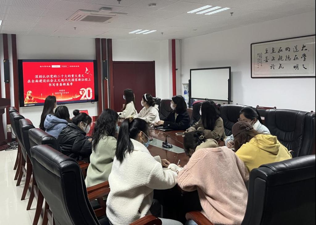 11月16日晚,我校党委书记刘德安为我校师生做党的二十大精神宣讲报告,3044永利集团组织团学干部在曲江校区综南楼909会议室线上集中收看宣讲会直播。