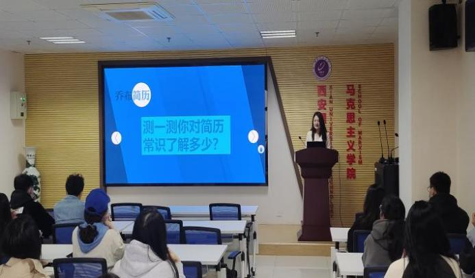 会中,郑老师首先以“测一测你对简历常识了解多少”为题导入,从简历制作要领和具体案例分析两个方面着手,与同学们分享了简历制作的相关内容,包括个人信息、求职意向、教育背景、经历撰写、获奖荣誉等内容的调整和设计,阐明了“好的简历能够让hr眼前一亮”的重要性,其讲解实用性与可操性强,为同学们直观呈现了高标准简历制作的全过程。会后,郑老师结合自身工作经验,对同学们在简历制作过程中的疑问进行逐一解答。