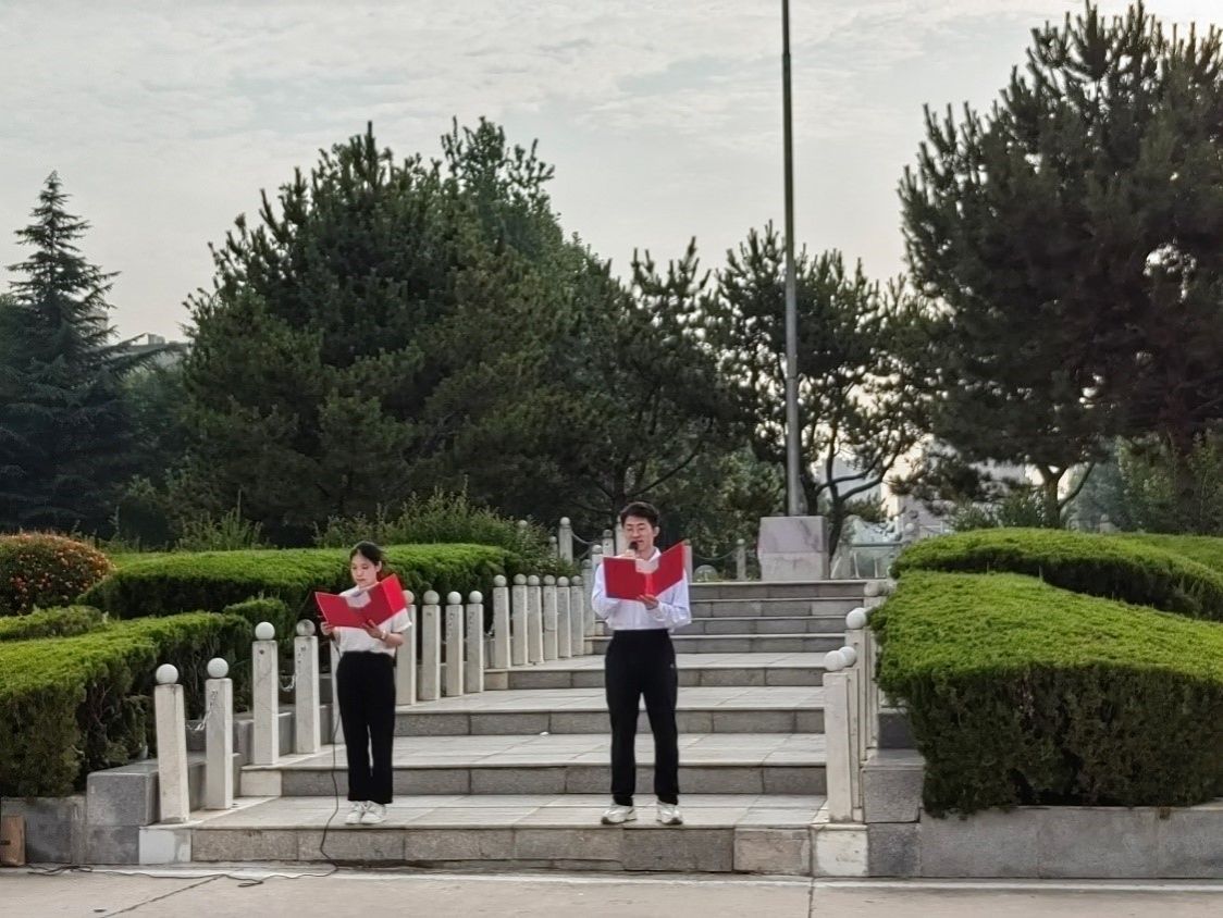 研231101班任卓欣和研231102班锡佳鑫以《青春恰似火,扬帆正当时》为题做国旗下演讲。