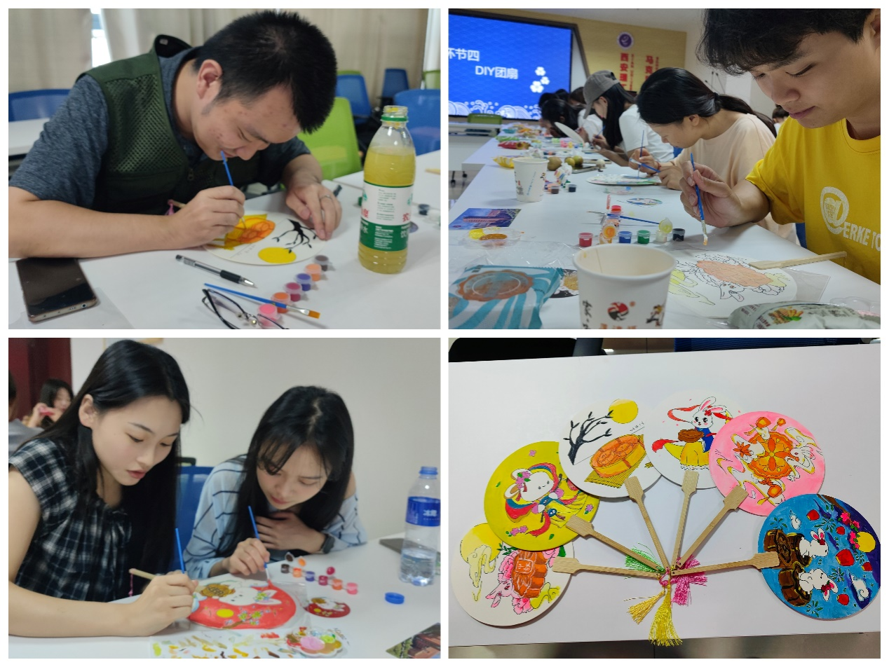 在DIY团扇环节,同学们亲手绘制团扇,将自己对中秋的美好祝愿融入其中。无论是精致的花卉图案,还是寓意吉祥的文字,每一把团扇都独一无二,承载着制作者的巧思与情感。通过DIY团扇,大家亲手制作了属于自己的中秋纪念品,体验了传统手工艺的魅力。