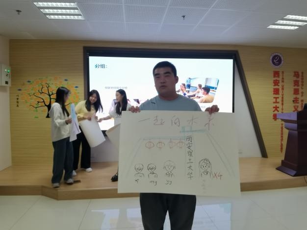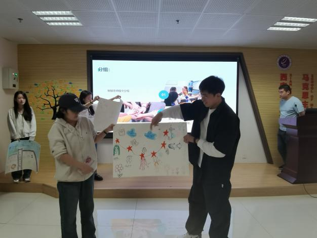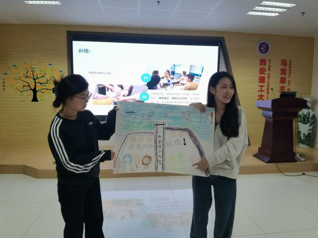 在大家的热切期待中,“很高兴认识你”活动拉开了本次心理团辅的序幕。这一活动旨在让同学们迅速破冰,找到自己的组员。随机分组之后,各个小组以“西安理工,很高兴认识你”为主题,结合自己小组成员的特征,共同作画,并选出一名组长,对本小组的作品进行介绍。破冰活动奠定了温馨、融洽的基调,使同学们彼此有了初步的认识。