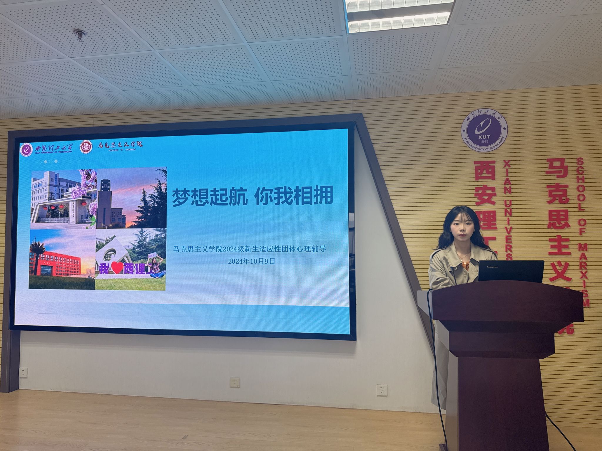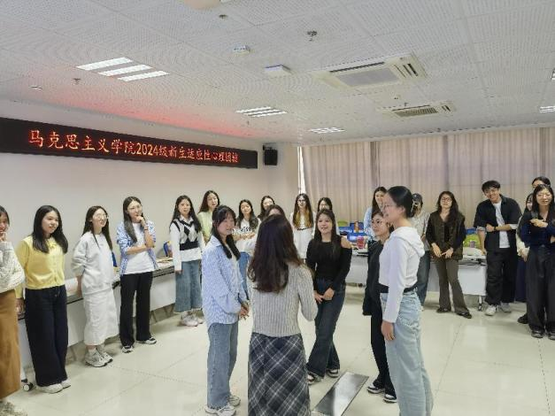 为进一步加强心理健康教育,普及心理健康知识,帮助新生更好适应新环境,积极融入新集体,培育积极向上、互帮互助的团结氛围,我院于10月9日下午在911报告厅开展2024级新生第一次适应性团体心理辅导,辅导员王莹主持本次活动,研241101班全体学生参加。