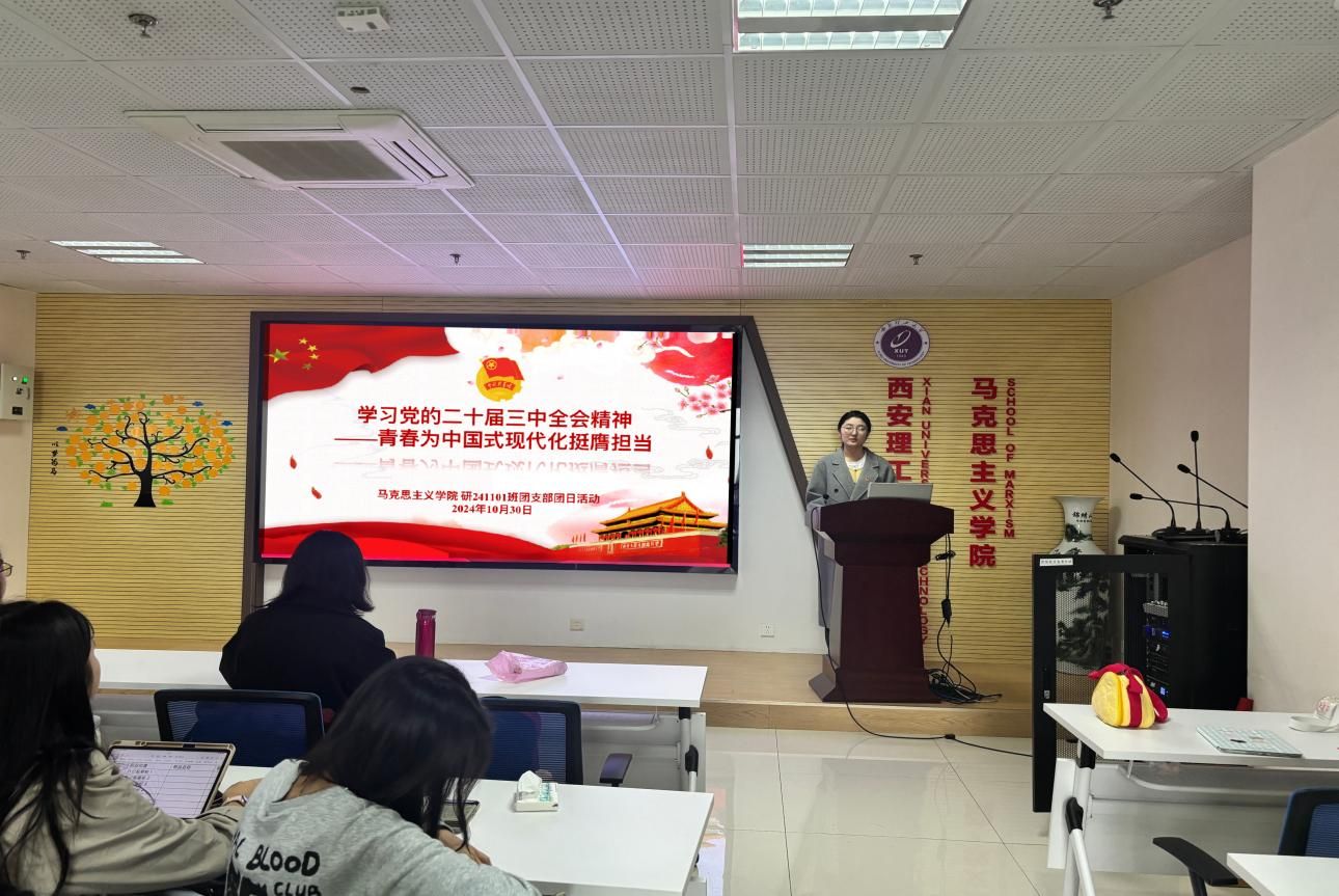 10月30日,支部全体成员在综南楼911报告厅集中学习党的二十届三中全会精神,观看纪录片《见证变革的力量》,体验非遗竹编画,感受改革开放以来我国发生的巨大变化。