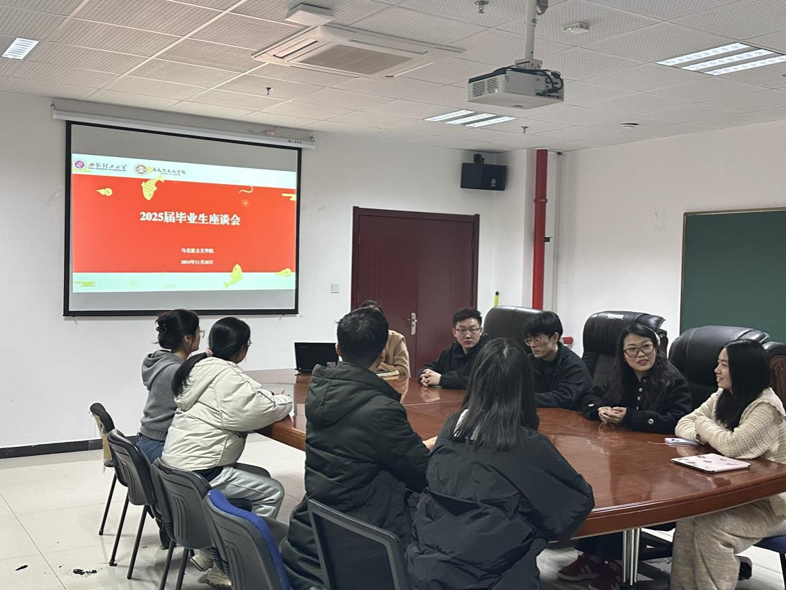 为精准了解2025届未就业学生目前在求职中面临的困难和他们的具体需求,12月11日,我院在综南楼1009会议室召开未就业学生座谈会,毕业班部分学生和辅导员王梦老师参加本次座谈会。