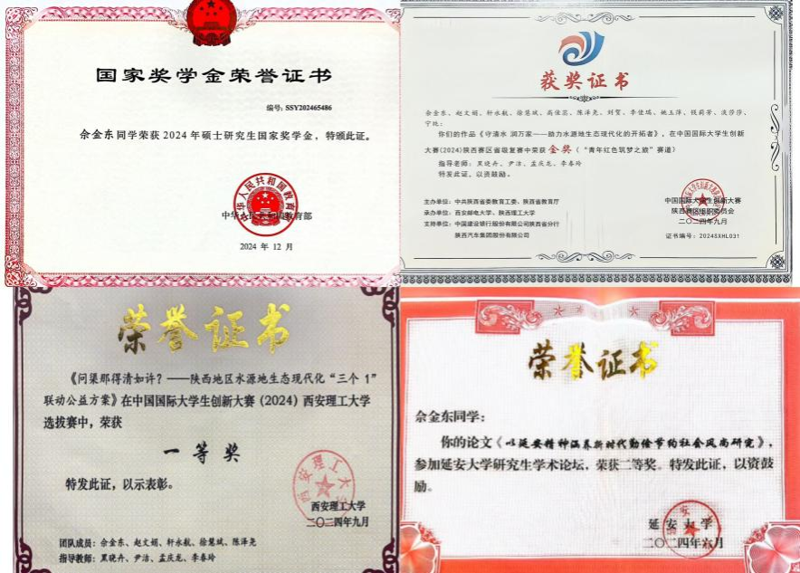 科研上,他潜心学术,积极撰写论文。已在省级党报理论版发表1篇学术论文,另有一篇论文荣获延安大学学术论坛二等奖。他参与1项国家社科基金项目,连续2年投身陕西省巩固拓展脱贫攻坚成果同乡村振兴有效衔接评估项目,以及陕西省世行贷款黄河流域生态保护修复和环境污染治理示范项目环境与社会管理监测项目。在创新竞赛中,他作为负责人兼答辩人,带领团队参赛,项目作品在获得中国国际大学生创新大赛(2024)永利集团3044校级选拔赛一等奖后,又斩获陕西赛区省级金奖。