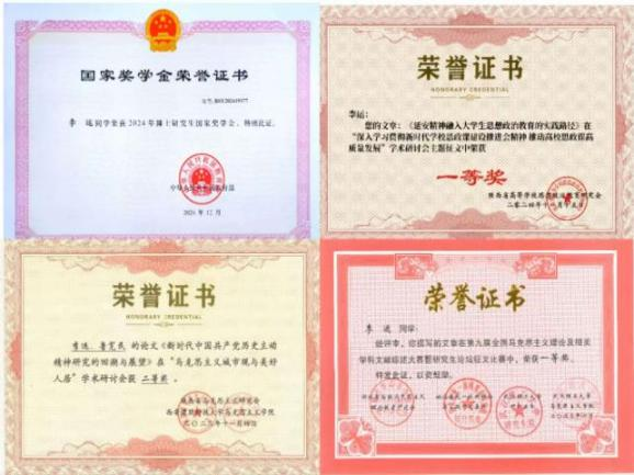 学习的根本,在于学以致用。作为一名马克思主义理论专业的博士研究生,他勤奋刻苦、潜心钻研,参与导师主持的国家级重点项目、省部级项目等科研课题10余项,在《学校党建与思想教育》《理论导刊》等刊物发表学术论文3篇,荣获国家奖学金、西安市哲学社会科学研究成果三等奖、陕西省第七届研究生创新成果展高质量成果二等奖、湖北省高校马克思主义理论教育研究会优秀论文一等奖、永利集团3044优秀研究生标兵等荣誉和奖励。