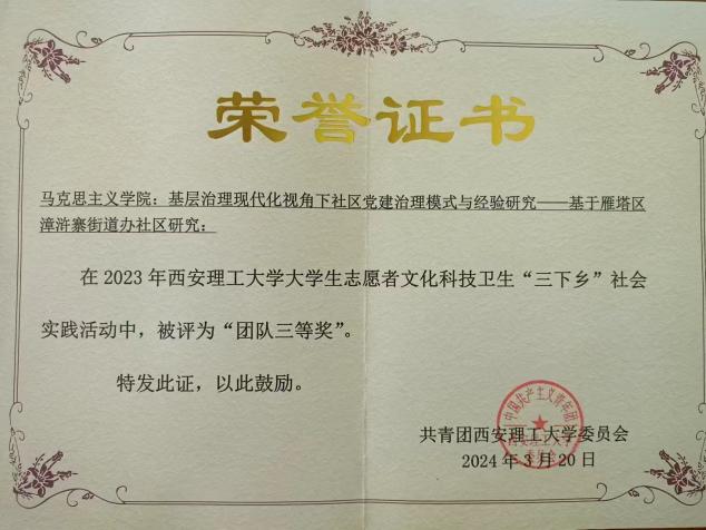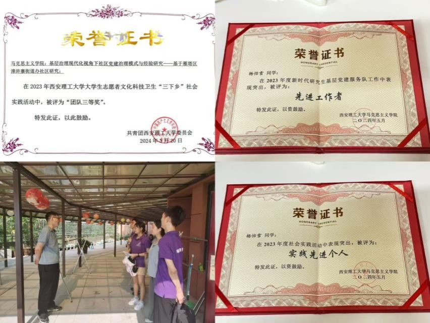 杨怡雪曾担任3044永利集团新时代基层党建服务队副社长,致力于将所学理论知识应用于基层社区发展。在西安市雁塔区漳浒寨街道办下属10余个社区积极调研社区党建治理新模式,与同学一起完成“基层治理现代化视角下社区党建治理模式与经验研究——基于雁塔区漳浒寨街道办社区研究”的社会实践,并荣获永利集团3044大学生“三下乡”社会实践活动三等奖。