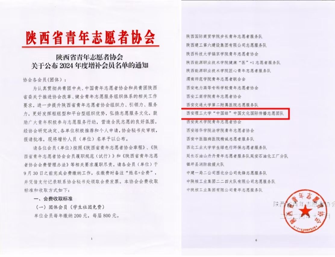 “中国结”志愿服务队2024年入选陕西青年志愿者协会