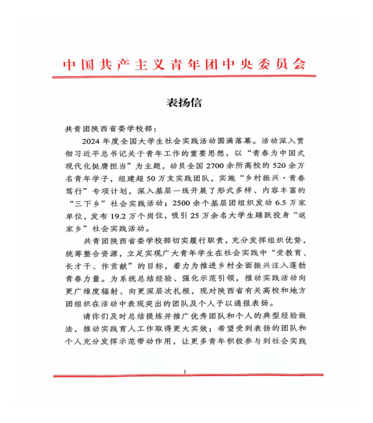 基层党建服务队获评2024年度大学生“三下乡”社会实践活动全国优秀团队(团中央通报表扬)