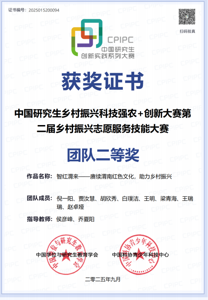 中国研究生乡村振兴科技强农+创新大赛第二届乡村振兴志愿服务技能大赛全国二等奖